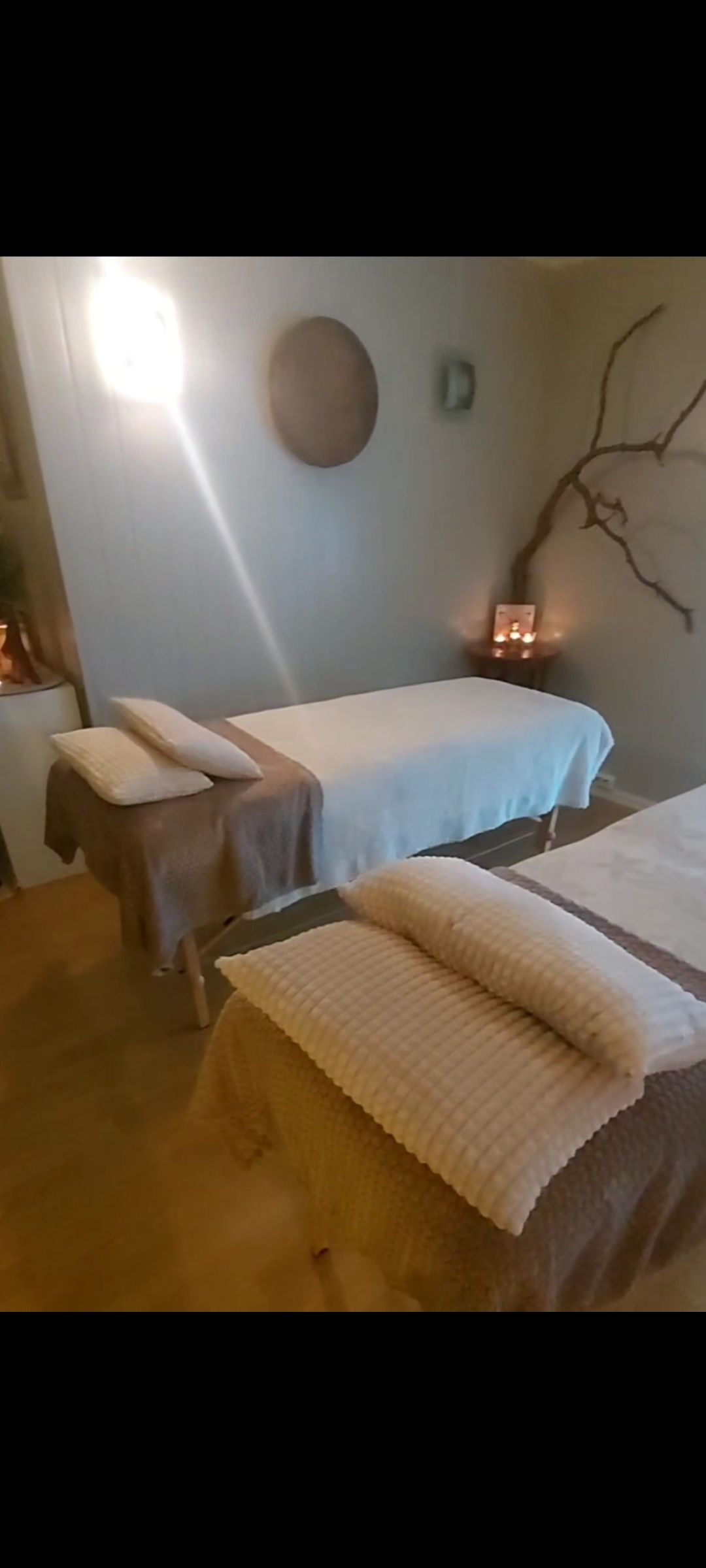 Med lette, varme hender holdt hun først på leggene mine. Etter kort tid kjente jeg en tydelig varme som spredte seg oppover bena, nesten som om de lå i lunt vann. Det var en uvant, men samtidig behagelig følelse. Det som overrasket meg mest, var at jeg kunne kjenne hendene hennes på bena selv om jeg opplevde at hun hadde flyttet dem til skuldrene. Et lite øyeblikk ble jeg usikker på hvor hun faktisk befant seg.