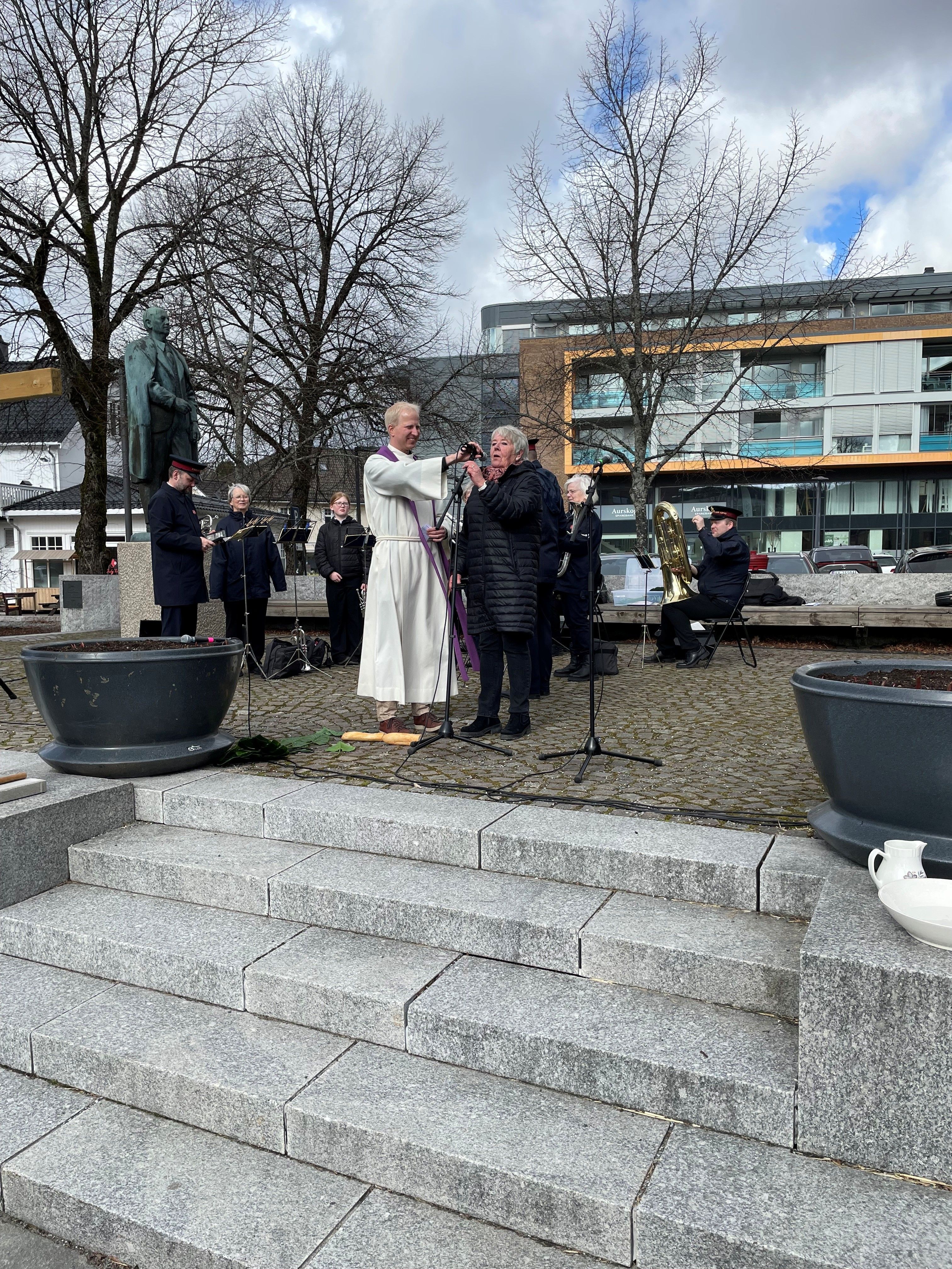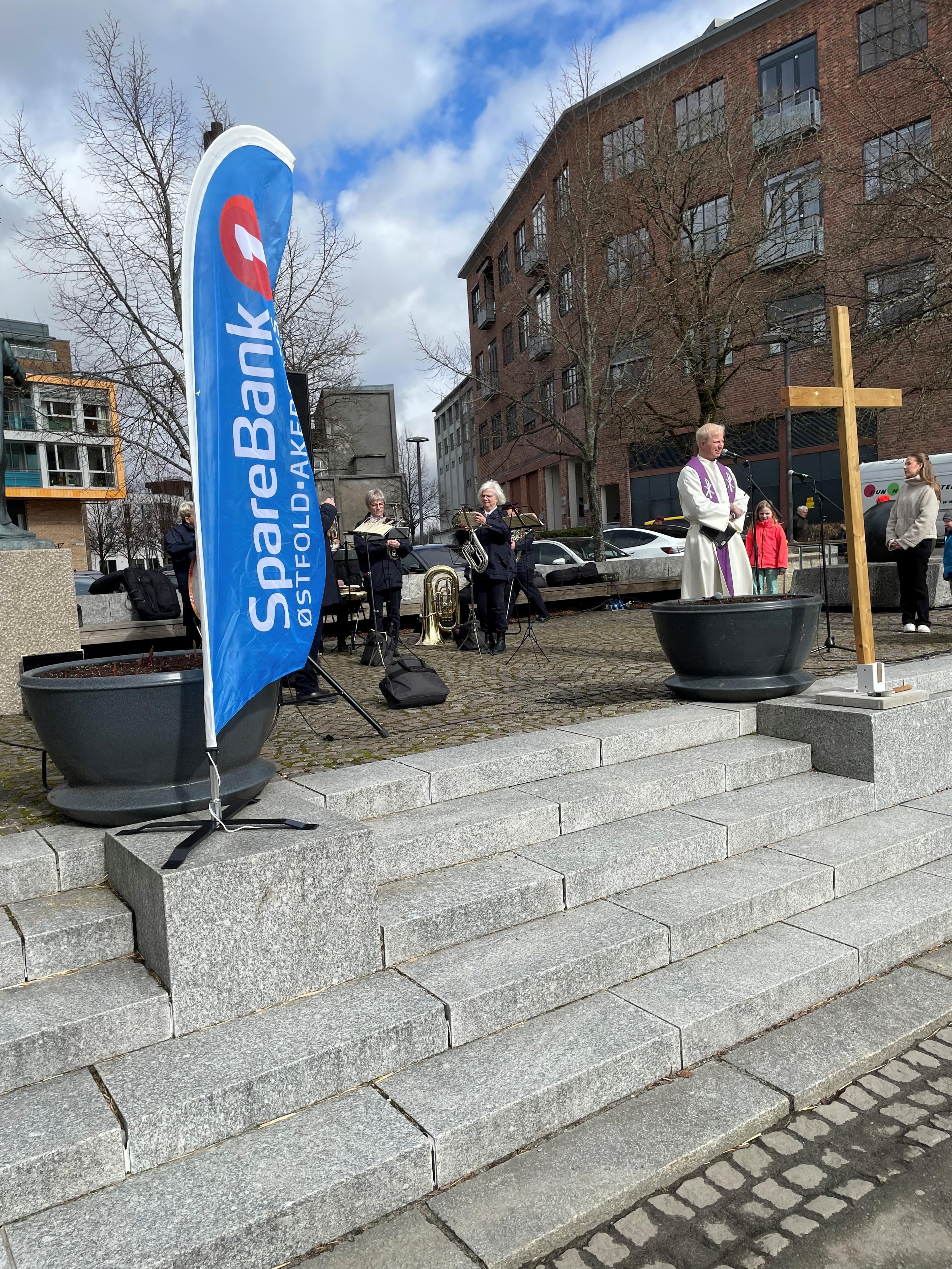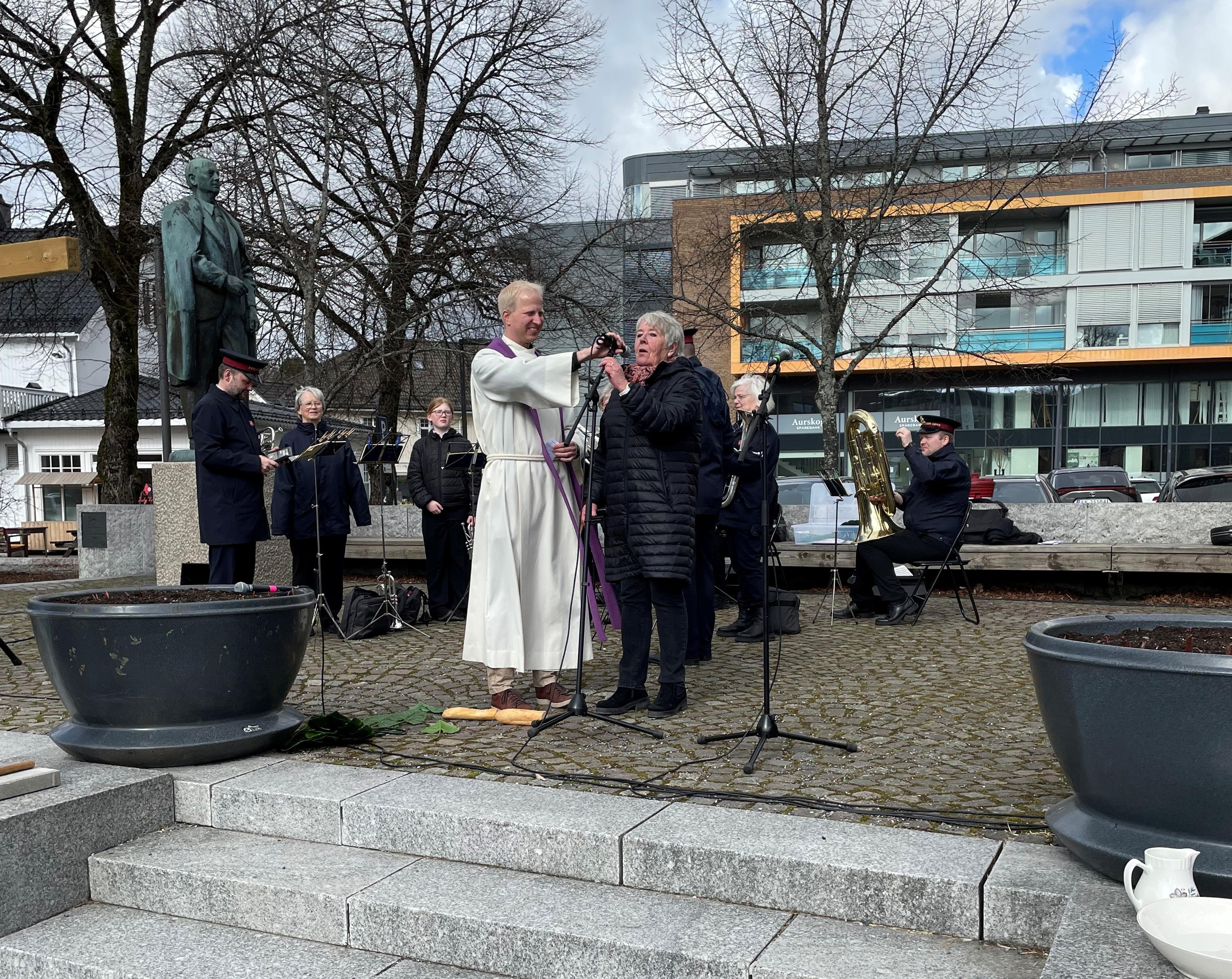 Arrangementet startet med nydelig musikk fra Frelsesarmeen, før vår egen prest Oscar tok ordet og ledet oss gjennom påskefortellingen. Han sto ikke alene. Med seg hadde han et lite kor og noen flinke barn som bidro med et koselig påskeshow som passet perfekt til fortellingen.